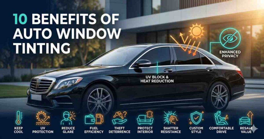 If you’re considering tinting your vehicle in 2026, this guide breaks down the top 10 benefits of auto window tinting and why it’s a smart investment.