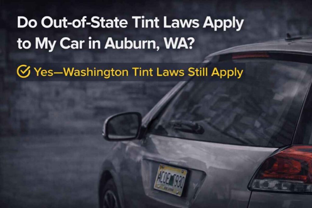 Yes—Washington State tint laws apply when you are driving in Auburn, even if your car is registered out of state.